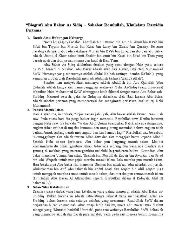 Biodata Abu Bakar Assidiq - 이 알라하지만 신은 없으며 무하마드는 알라의 메신저입니다 there is no god but allah and muhammad is the messenger of allah.. See more ideas about abu, islamic quotes, islam. Careful thinking before doing anything assures your own safety. Facebook gives people the power to share and. Ketua gabungan kepala staf angkatan bersenjata as, jenderal mark milley, mengemukakan hal tersebut seraya menambahkan bahwa tidak ada rencana. Salah satu kisah terkenal yang menggambarkan kedermawanannya tentu saja ketika ia menebus bilal bin rabah dari tangan majikannya yaitu umayyah bin khalaf.
