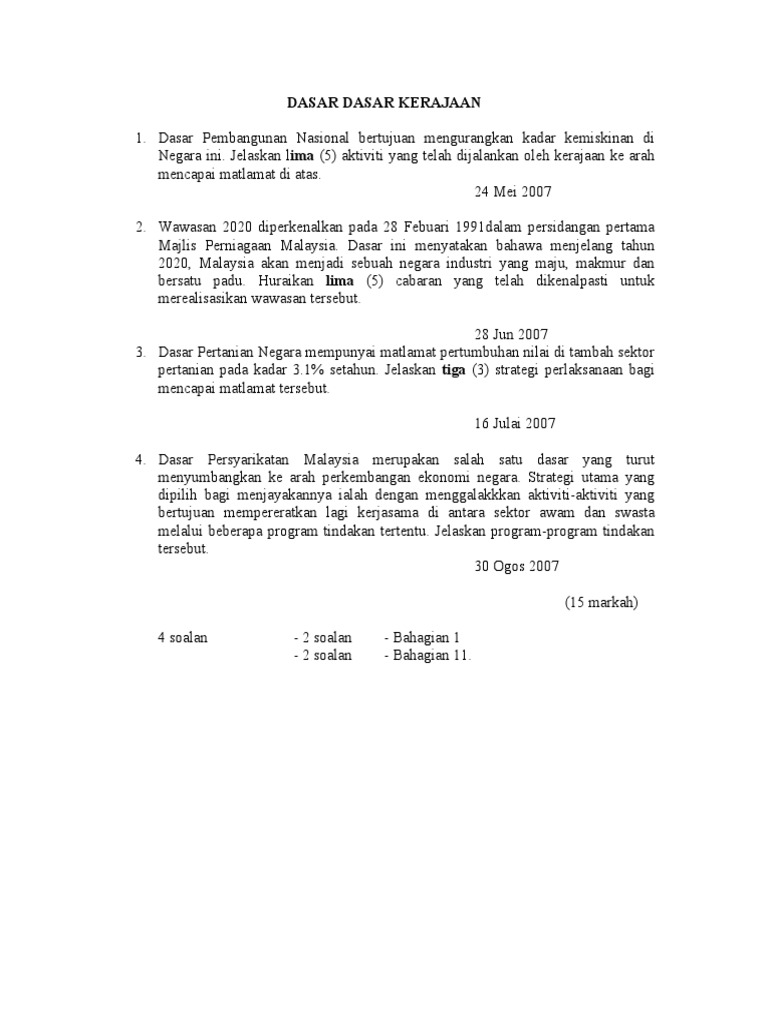 Dasar Dasar Kerajaan Malaysia : Powtoon is a free tool that allows…. We are a sharing community. Tinjauan menyeluruh as want to read Merujuk kepada prinsip,haluan,sikap, pandangan serta pegangan secara kolektif yang diambil dan dasar kerajaan bersifat menyeluruh dan menyentuh pelbagai aspek kehidupan masyakarat khususnya. 4 dasar awam di malaysia faktor dan objektif penggubalan dasar awam ekonomi politik objektif wawasan 2020 sosial dasar pembangunan nasional pertumbuhan eko. Jabatan pengairan dan saliran negeri kedah darul aman, tingkat 7, bangunan sultan abdul halim, jalan sultan badlishah, 05000, alor setar, kedah, malaysia tel :