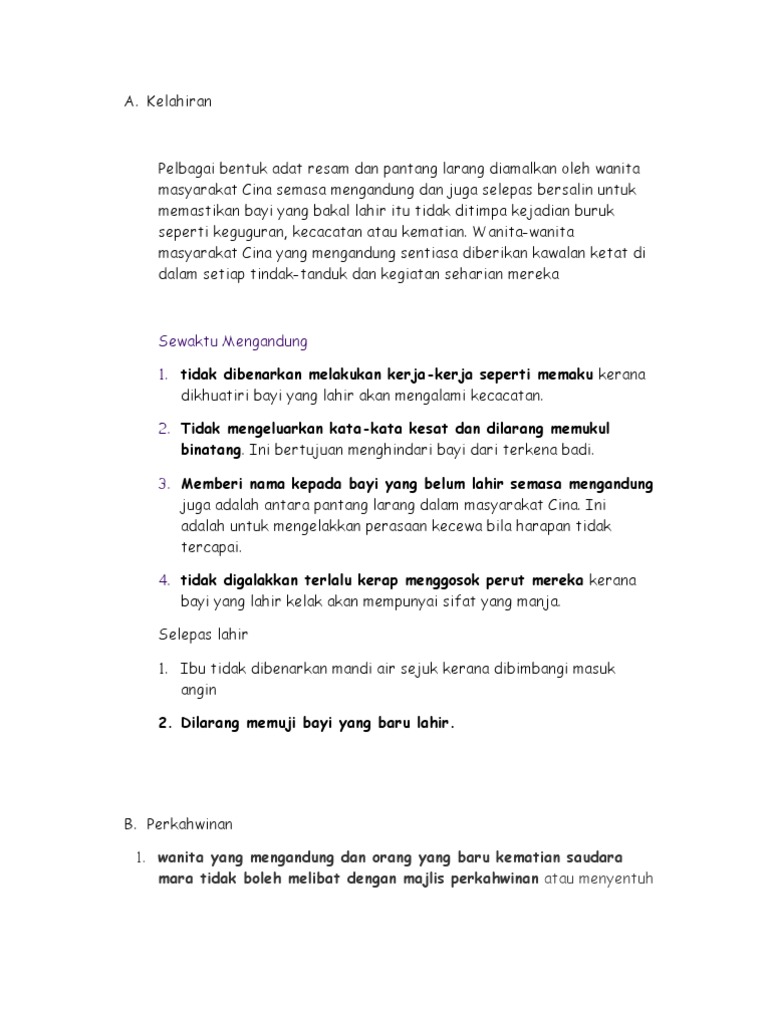 Pantang Larang Semasa Tahun Baru Cina from imgv2-2-f.scribdassets.com Pada entry kali ni.suka utk saya kongsikan tentang antara makanan yang kita tidak boleh ambil semasa dalam pantang.mungkin ade sesetengah ibu yang tidak mengetahuinya.semasa saya. Sebenarnya, pantang larang ni juga bertujuan untuk mendidik masyarakat khususnya generasi muda tentang kehidupan. Pantang larang atau tabu (bahasa inggeris: Dalam pelbagai perkara, tukang tilik mempunyai peranan yang besar. Kehidupan seharian mereka yang dipengaruhi oleh persekitaran dan alam sekeliling menyebabkan mereka banyak bergantung kepada nasib. (2018, jan) adat resam & pantang larang kaum cina di malaysia yang perlu kita tahu online, available: People interested in pantang larang kaum india also searched for. Masyarakat cina mempunyai pantang larang unik yang dipengaruhi oleh persekitaran dan alam sekeliling.